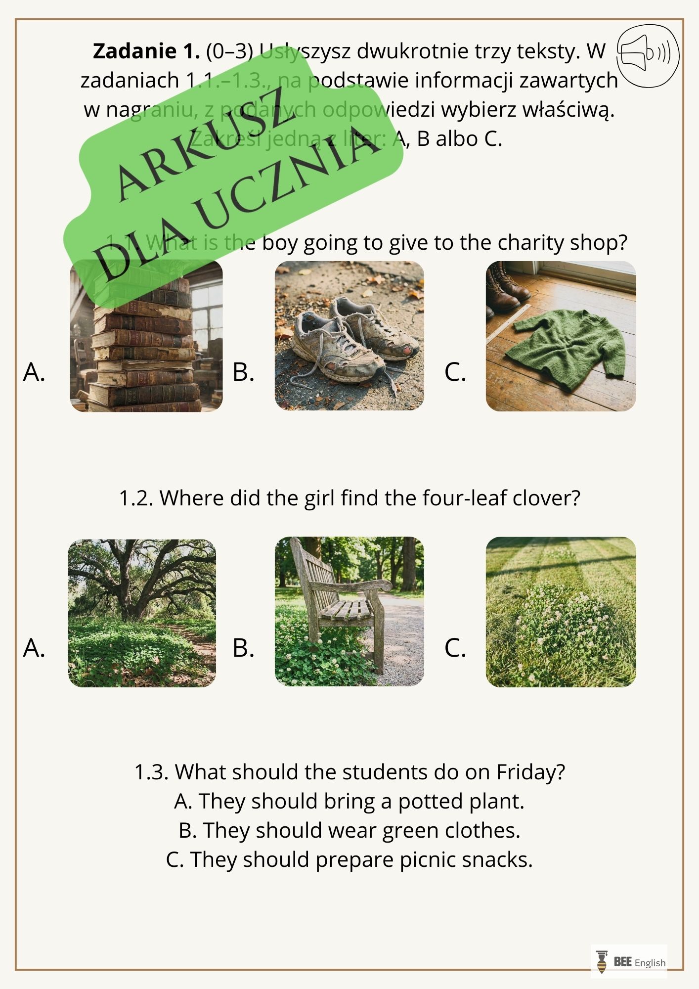 ✅ 21 zadań, w tym między innymi  z zakresu słuchania, czytania i reagowania językowego,
