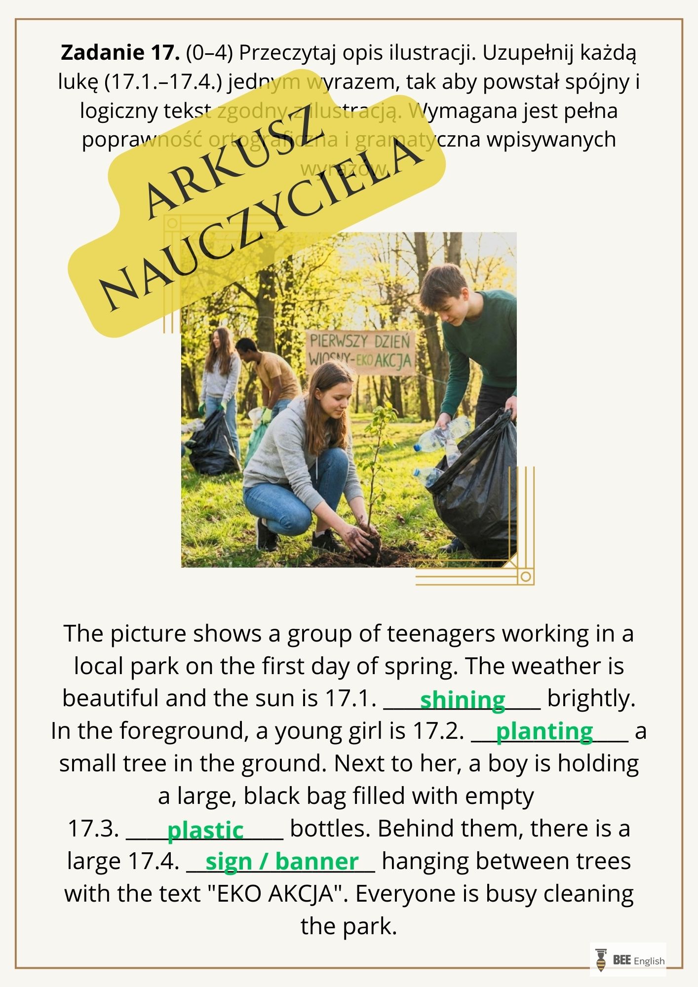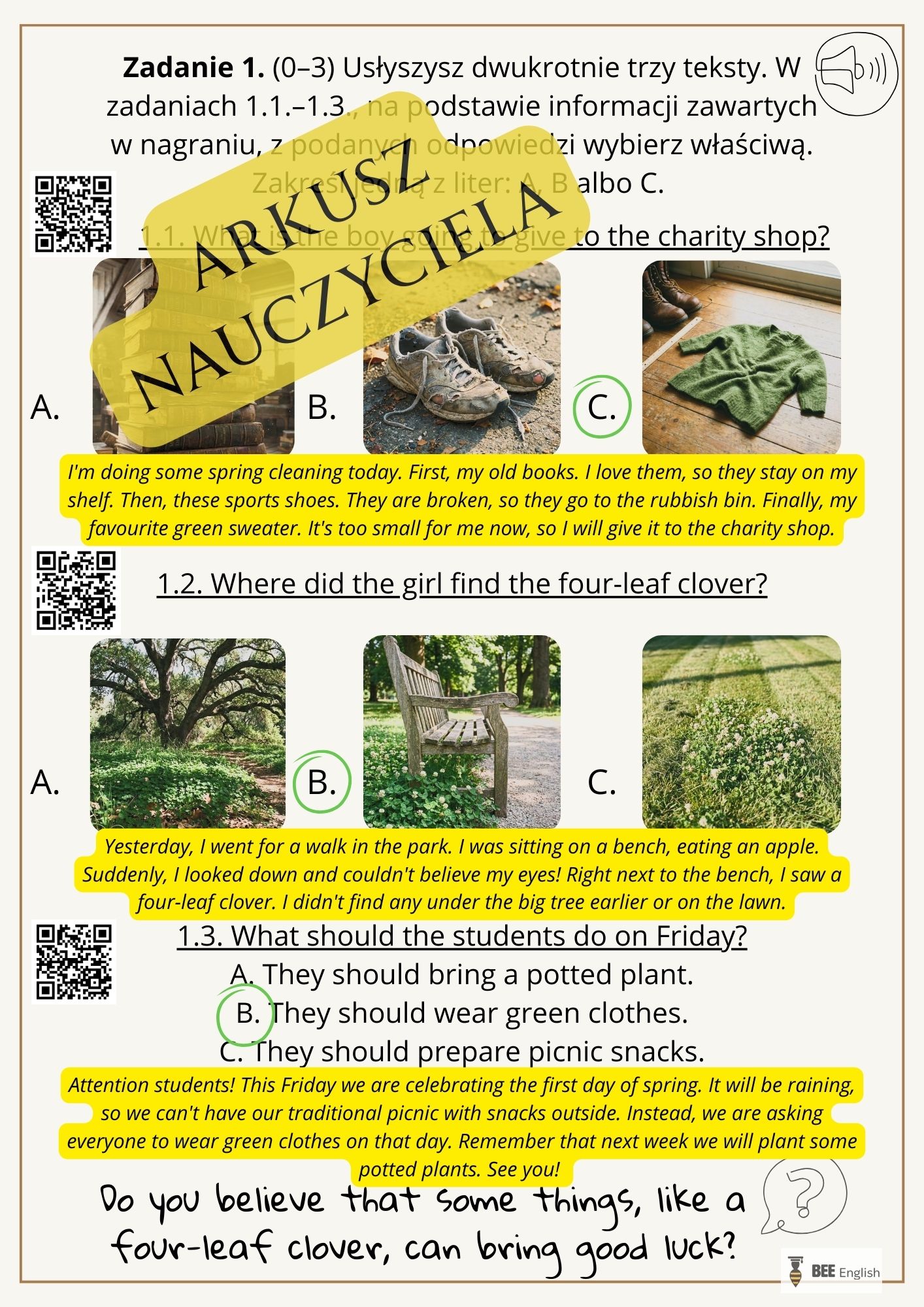 To nie tylko arkusz egzaminacyjny, to gotowy scenariusz lekcji w wersji dla nauczyciela oraz dla ucznia – ze słuchaniem i pytaniami uzupełniającymi.